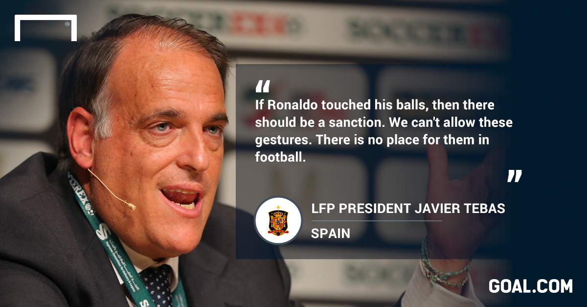 "If Ronaldo touched his balls, then there should be a sanction," Tebas said earlier this week. "We can't allow these gestures. There is no place for them in football."